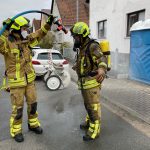 Das gute ist, dieses Risiko kann man deutlich reduzieren, wenn man bereits an der Einsatzstelle mit Hygienemaßnahmen beginnt. Zunächst werden unsere Kameraden mit Wasser grob abgewaschen, so dass bereits ein Teil der Verschmutzung gelöst und abgespült wird. Anschließend müssen sich unsere Kameraden in einer bestimmten Reihenfolge entkleiden, so dass erst zum Schluss die Atemschutzmaske und damit die Versorgung mit der umluftunabhängigen Luftversorgung aus der Atemschutzflasche getrennt wird. Da wir unter unserer PSA keine weitere Kleidung, bis auf unsere Unterwäsche tragen können, überbrücken wir die Zeit bis zu einer gründlichen Dusche mit einer Sportkombination, bestehend aus Hose und Jacke. Die abgelegte Einsatzkleidung wird beim Entkleiden in dafür vorgesehenen Behältnissen luftdicht verpackt und einer gründlichen, industriellen Reinigung zugeführt. Damit wir in voller Mannschaftsstärke zu folgenden Einsätzen ausrücken können, erhält die eingesetzten Kräfte ersatzweise einen frischen Satz Einsatzbekleidung.