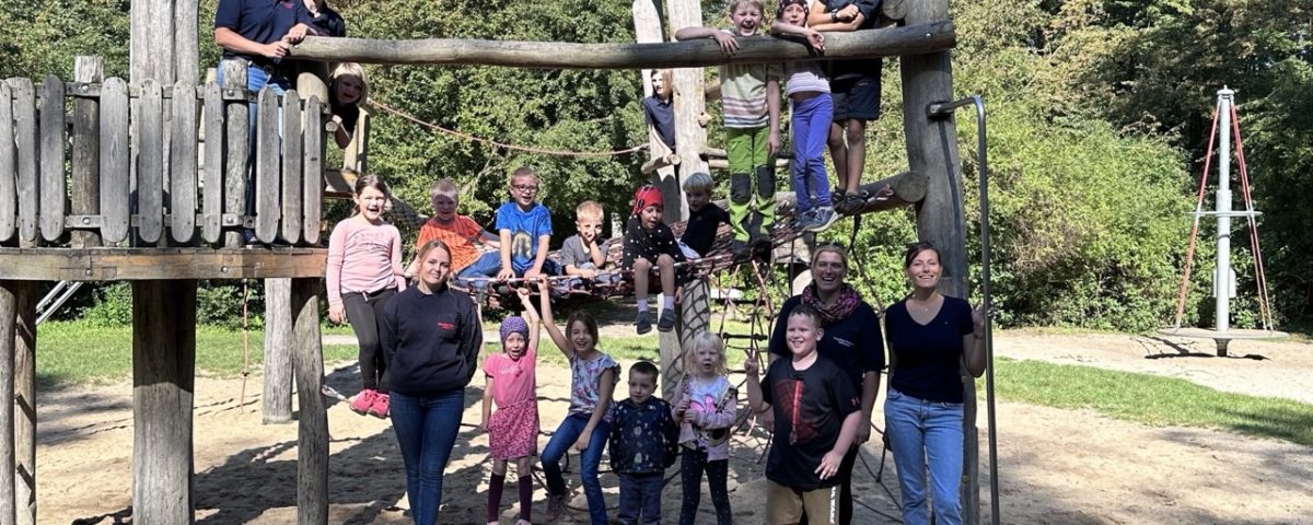 Der morgendliche Tau auf dem Rasen des Spielplatzes, der bei einigen für nasse Füße sorgte, konnte unserer guten Laune nichts anhaben. Unsere Kinder erkundeten den großen Spielplatz bei strahlendem Sonnenschein und milden Temperaturen.
